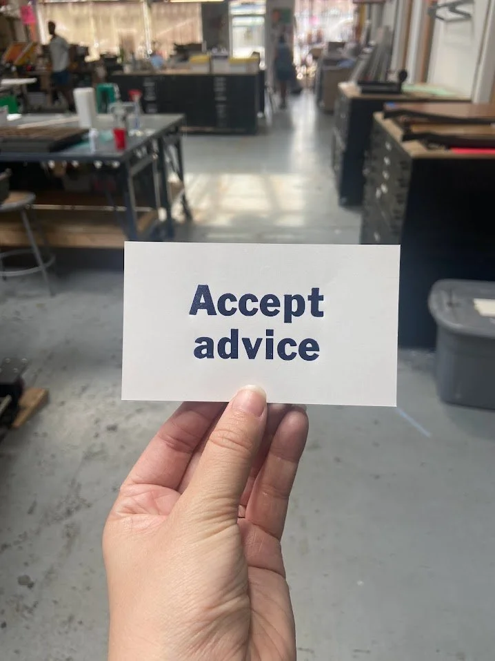 Accept Advice (Oblique Strategies series, letterpress)